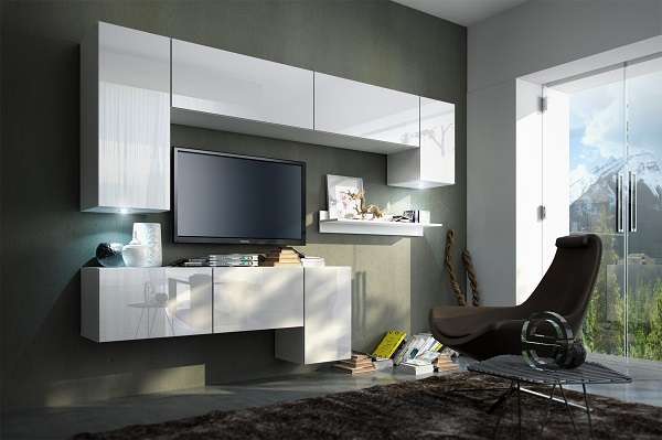 Visoki sijaj je odlična izbira za moderne prostore v minimalističnem slogu. Vsi ostali elementi morajo biti malce manj radoživi in opazni, saj element v visokem sijaju privabi pogled nase in ga tudi zadrži. Najpogosteje so dnevni regali v visokem sijaju kombinirani s stekleno klubsko mizico in sedežno garnituro v nevtralnih odtenkih. Kombinirajte na primer regal v beli barvi v visokem sijaju s sedežno garnituro v sivih, rjavih ali bež odtenkih. Klubska mizica naj bo steklena s kovinskim ali lesenim vznožjem. Ne kombinirajte tudi živih barv kavča in na primer lesene mizice v mat odtenku, saj se stilsko elementi ne bodo ujemali.